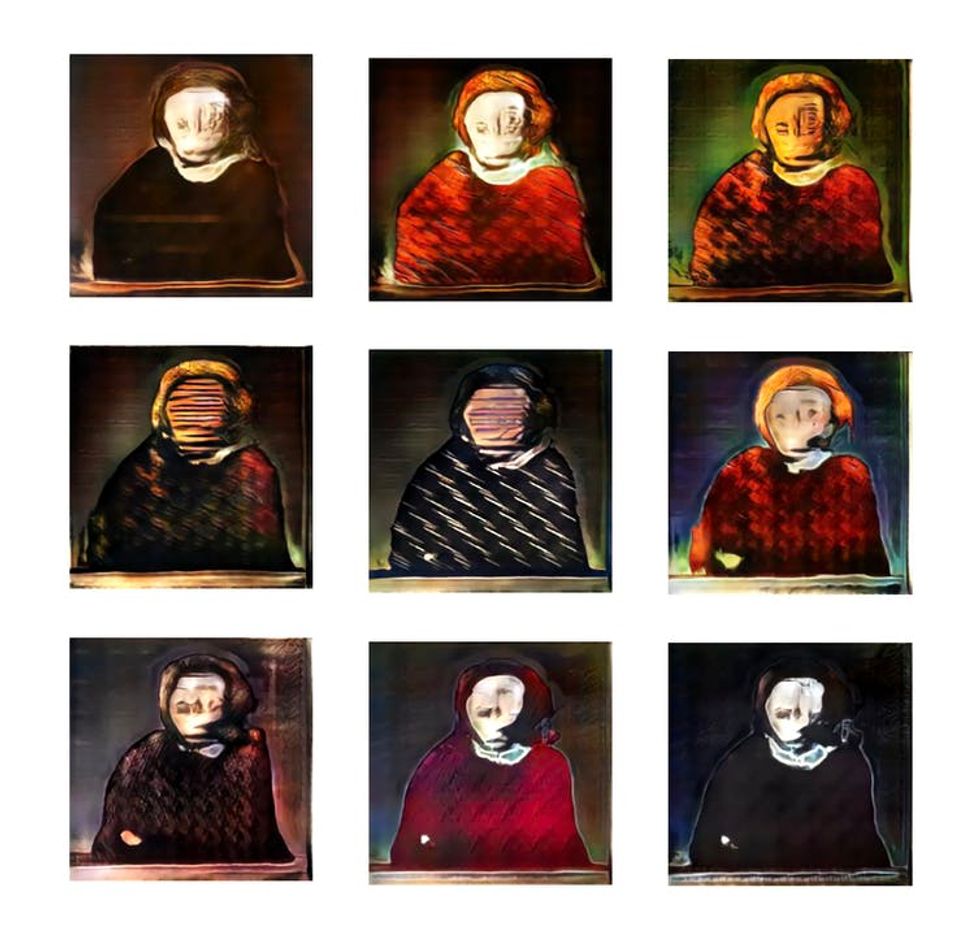 AICAN lacks any of that. It can, however, generate artwork that human curators can then ground in our society and connect to what’s happening around us. That’s just what we did with “Alternative Facts: The Multi Faces of Untruth,” a title we gave to a series of portraits generated by AICAN that struck us with its timely serendipity.