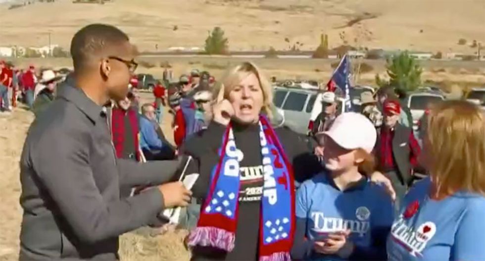 "He is bringing us together," the woman shouted, waving her hands above her head. "If you don't see this, this is togetherness!"