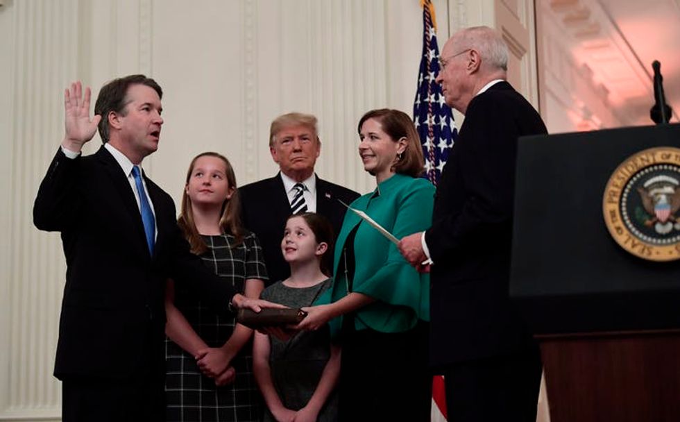 Kavanaugh is sworn in as a Supreme Court justice in the White House on Oct. 8, 2018.