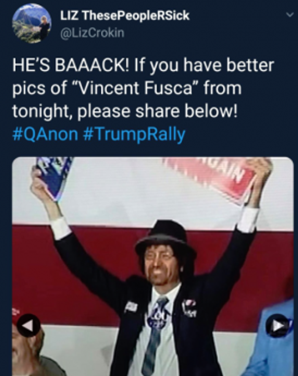 Travis View, who follows and frequently comments on developments within the QAnon community, notes that many QAnon followers were particularly excited this week to see Pennsylvania Trump supporter Vincent Fusca show up at one of the president's rallies.