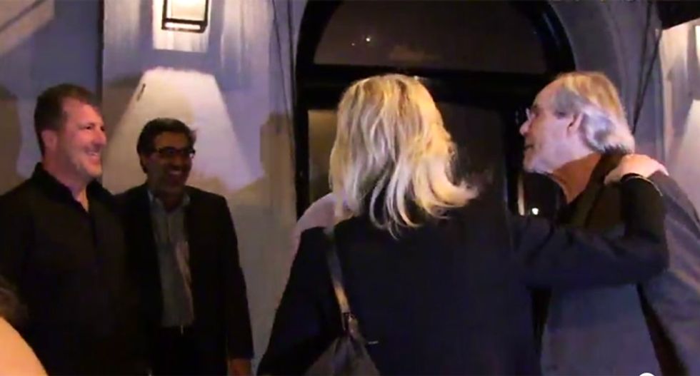 As he wound down, some Trump supporters heckled him and that led him to go face-to-face with them before being pulled away by a companion as he exclaimed, "This is what America's become!"