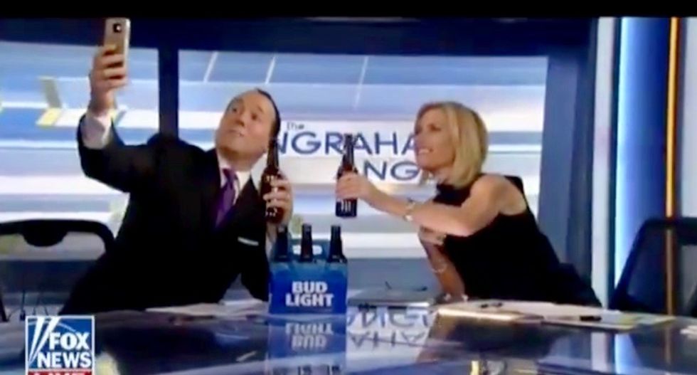 Arroyo and Ingraham decided to taunt the libs over the impending confirmation of Supreme Court nominee Kavanaugh by cracking open a couple cold Bud Lights to celebrate.