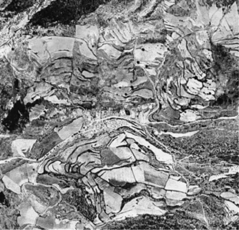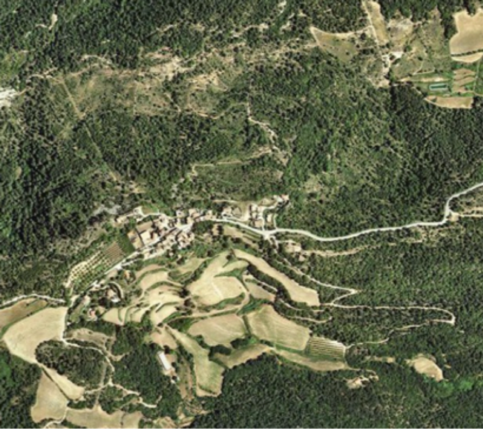 The same Spanish village in 2017. Large-scale rural depopulation has led to widespread abandonment of formerly agricultural land, massive fuel accumulation and subsequent historically unprecedented fires.