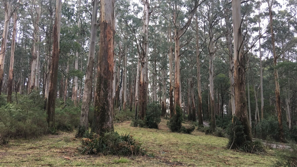 A green fire break in mountain ash forest near Kinglake, Victoria.
