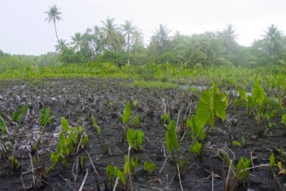 Taro crops destroyed by encroaching saltwater at Lukunoch Atoll, Chuuk State, Micronesia.