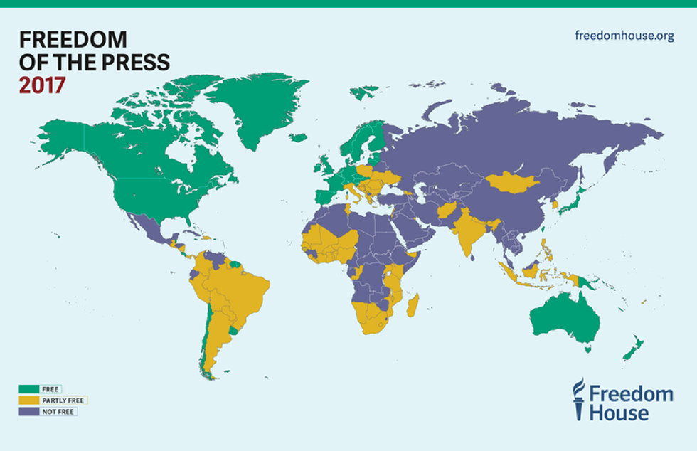 Global press freedom declined to its lowest point in 13 years in 2016 amid unprecedented threats to journalists and media outlets in major democracies and new moves by authoritarian states to control the media.