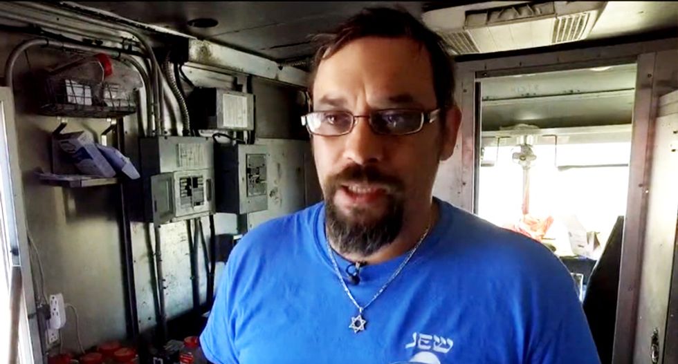 The vendor of a small Jewish food truck in Austin, Texas was horrified to find his business vandalized, ransacked and strewn with hate symbols, reports the Statesman.