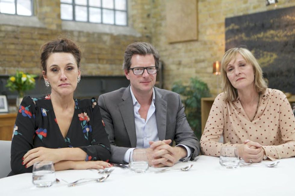 William Sitwell (c) and his fellow judges Grace Dent (l) and Tracey Macleod (r) on Masterchef the Professionals.