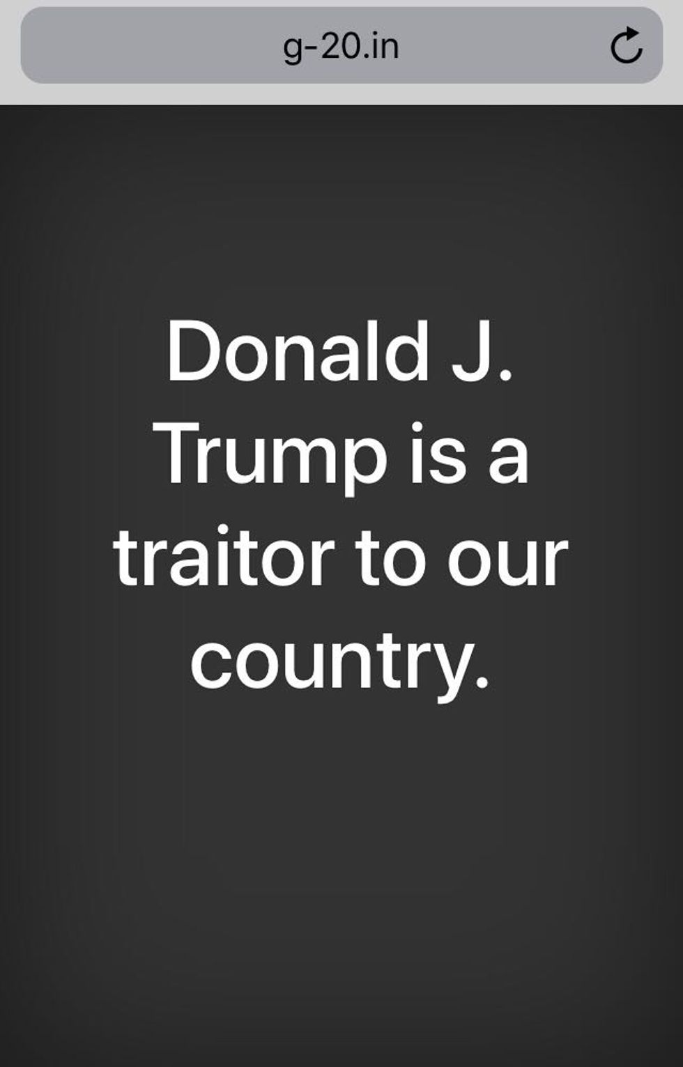 Because of the poor punctuation of the November 30 tweet, a link to the website G-20.in -- which features only the words "Donald J. Trump is a traitor to our country" -- was created.