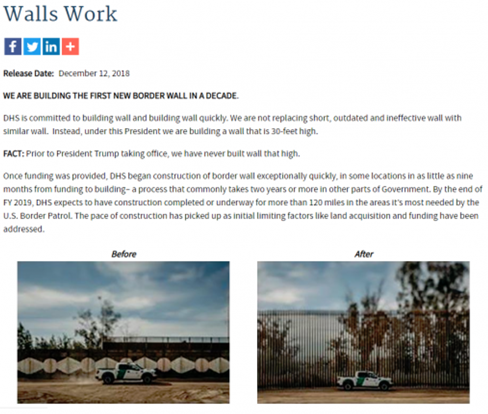 The statement, which is posted on the DHS's website, begins with an all-caps declaration that "WE ARE BUILDING THE FIRST NEW BORDER WALL IN A DECADE."