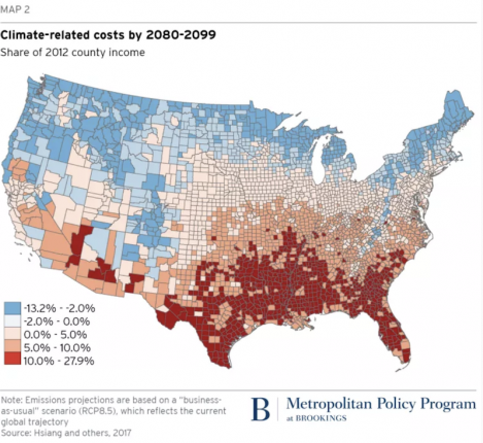 County-by-county breakdown of how climate change will play out economically/Brookings Institute[/caption]