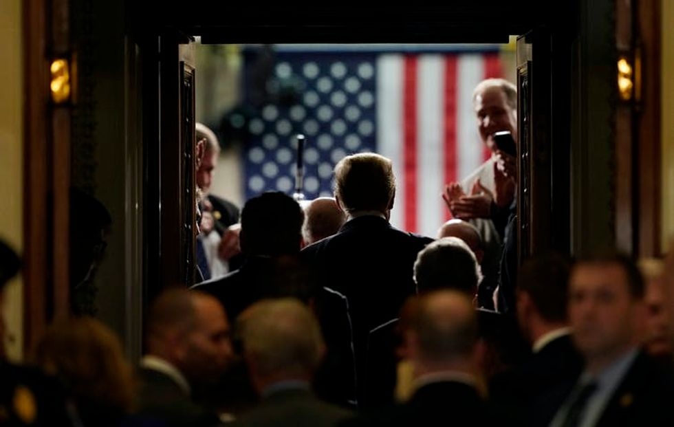 U.S. President Donald Trump enters House chamber to deliver the State of the Union address before Congress, 2019.