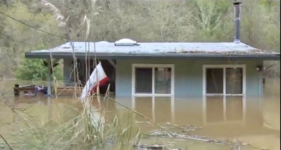 Water rose to the roofs of homes and submerged cars as the Russian River overflowed its banks, forcing authorities in Sonoma County, about 70 miles (110 km) north of San Francisco, to order the evacuation of 3,600 people, local authorities said.