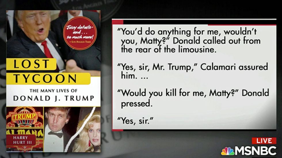Hayes revealed an anecdote told in the 1993 book Lost Tycoon: The Many Lives of Donald J. Trump by Harry Hurt III.