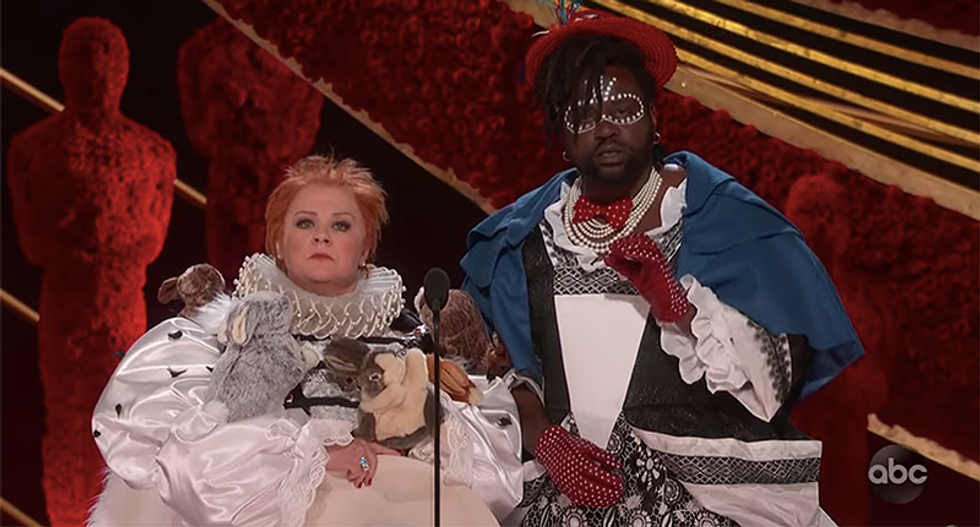 Best actress nominee Melissa McCarthy masted the art of the eccentric royal when presenting at the Academy Awards Sunday.