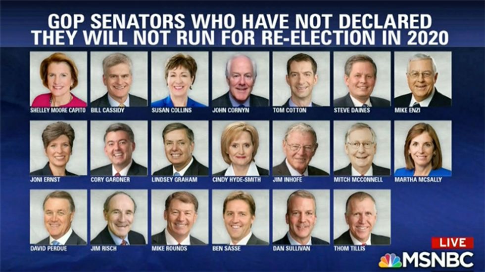 MSNBC graphic of Republican senators who have not announced 2020 re-election campaigns.[/caption]