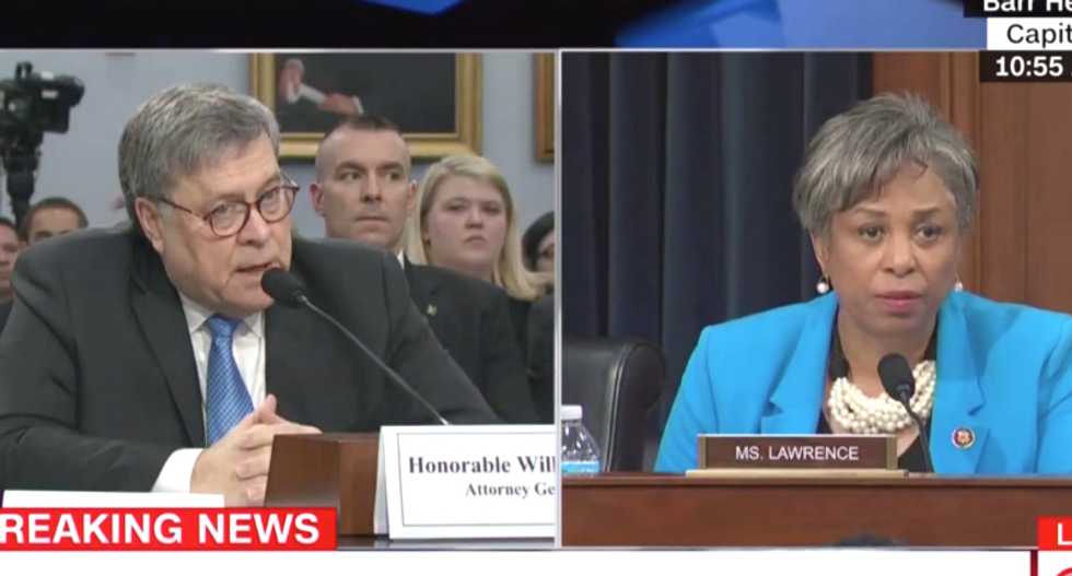 Michigan Democratic representative Brenda Lawrence hammered Attorney General Bill Barr for going along with President Donald Trump's renewed push to repeal the Affordable Care Act, chastising him for interrupting her and demanding he state whether he serves the president or the American people.