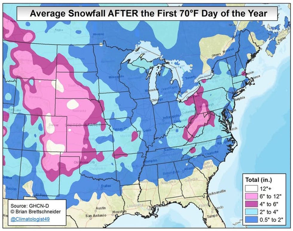 Across much of the western Plains, it’s not unusual to have significant snowfall occur after spring-like weather.
