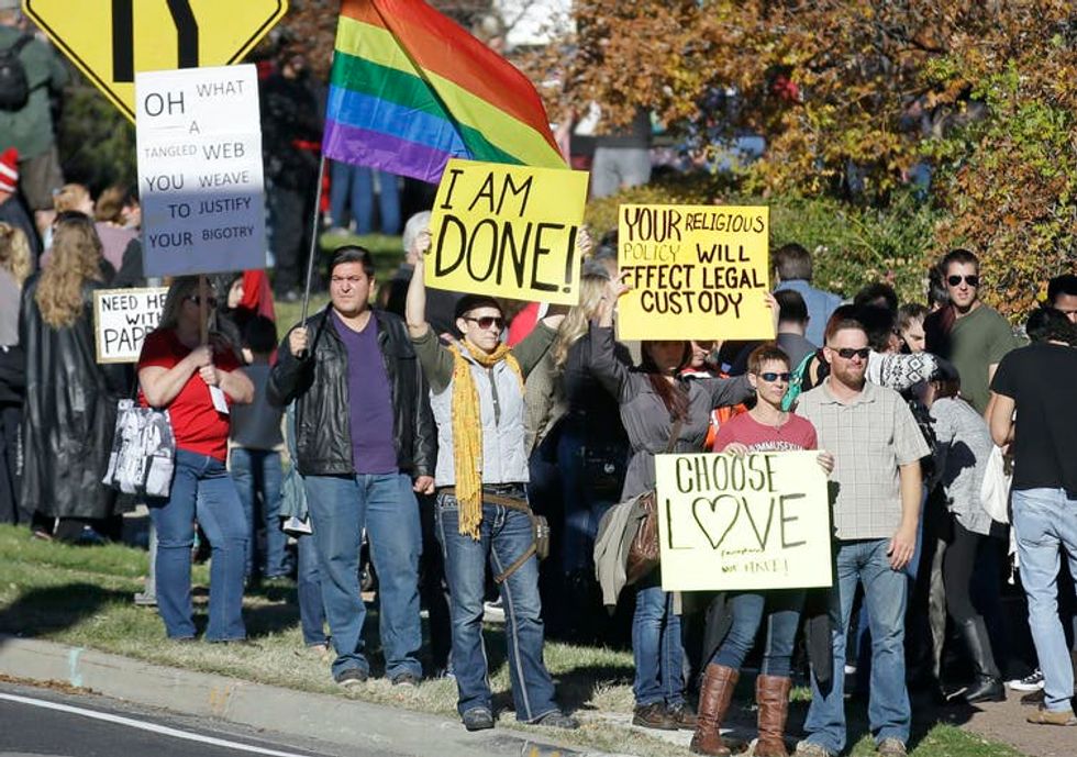 Protests in Salt Lake City in 2015 against the Mormon Church position on same sex couples.