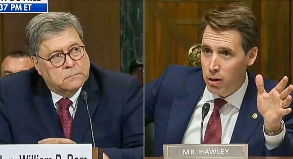 At a Senate hearing with Attorney General William Barr, Hawley chose to focus on two individual FBI agents instead of special counsel Robert Mueller's report on Russian election attacks.