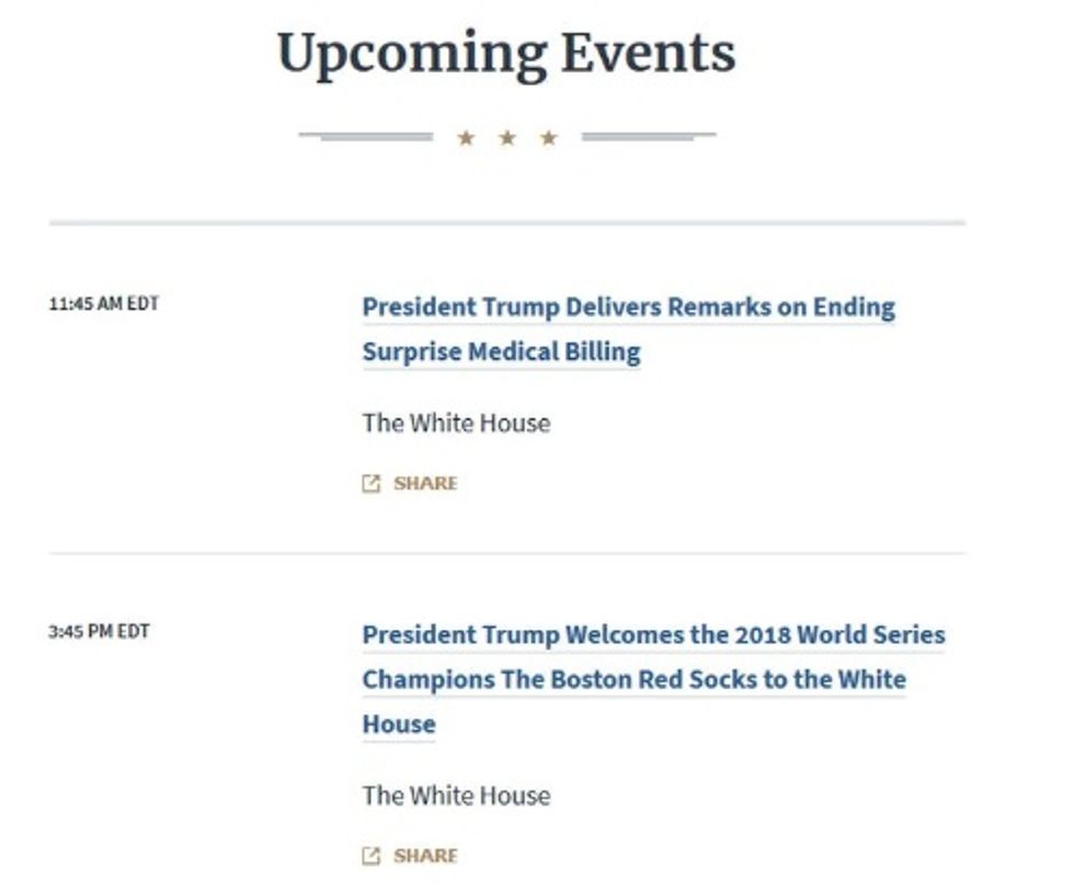 The Boston Globe reports that the Trump White House initially touted the president welcoming "The Boston Red Socks" to the White House on both its upcoming live events website and its official YouTube channel for live-streaming events.