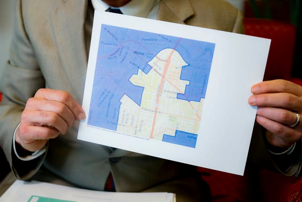 David Niven, a professor of political science at the University of Cincinnati holds a map demonstrating a gerrymandered Ohio district.