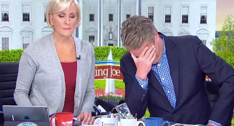 MSNBC's Joe Scarborough and Mika Brzezinski covered their faces in mock embarrassment as they watched clips of "Fox & Friends" hosts and Sen. Lindsey Graham praising President Donald Trump for losing more than $1 billion as a businessman.