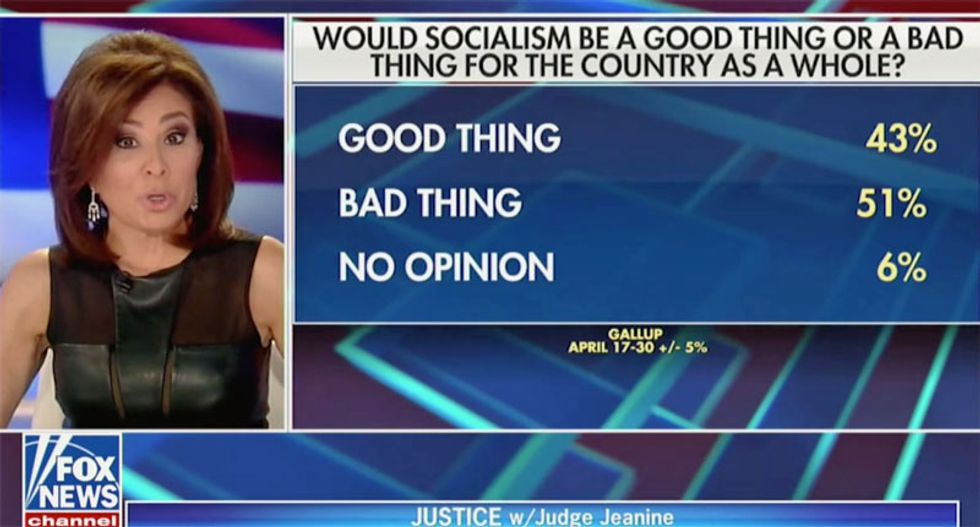 "That's right -- positive view of socialism. Wow," Pirro gasped.