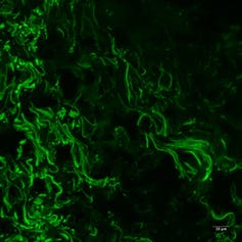 C. mast bacteria (green) living on the surface of a mouse eye.