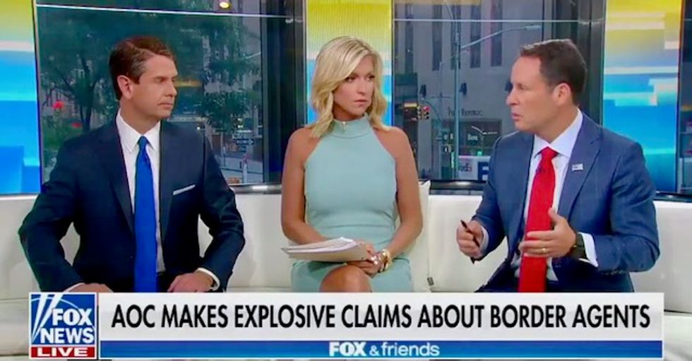 U.S. Rep. Alexandria Ocasio-Cortez is going after Brian Kilmeade, after the Fox News host likened the deplorable conditions in federal government-run concentration camps for migrants to a "house party."