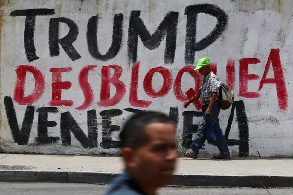 The U.S. embargo is sure to be unpopular in Venezuela. A wall in Caracas reads, ‘Trump, un-embargo Venezuela.’