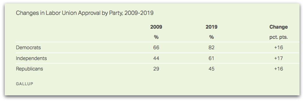 Gallup's survey also comes as 2020 Democratic presidential candidates are battling for union support as the primary process continues to intensify.