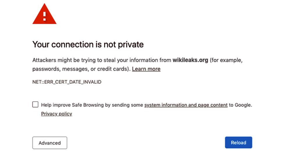"Attackers might be trying to steal your information from wikileaks.org (for example, passwords, messages, or credit cards)," is the message people saw when attempting to access the site from a Google Chrome internet browser.
