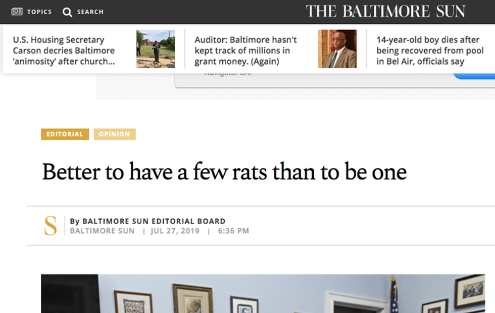The Baltimore Sun charged back with an editorial headlined “Better to have a few rats than to be one.”