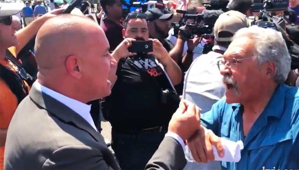 According to KVIA, the anti-immigrant ranter got into it with another man when the president's border wall was mentioned and appeared to suggest the president came to El Paso because of Rep. Alexandria Ocasio-Cortez (D-NY) "put us on the map."