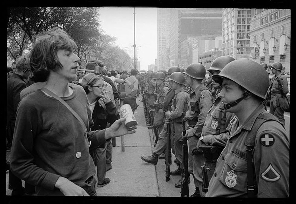 The 1968 Democratic convention in Chicago was filled with conflict, including this encounter between a demonstrator and National Guard soldiers on Aug. 26.