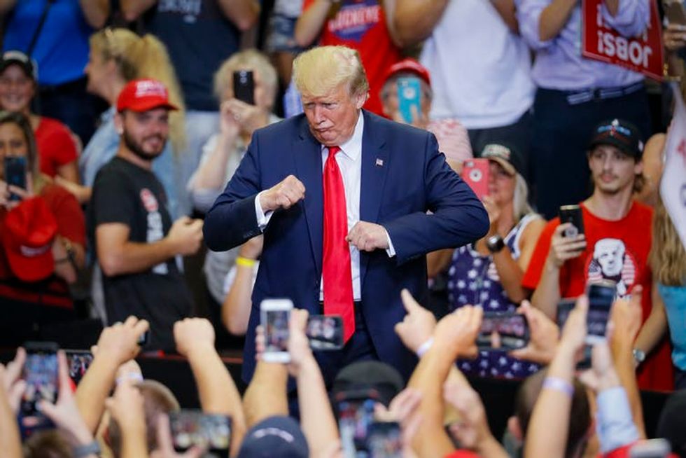 President Trump, at a campaign rally, Aug. 1, 2019, in Cincinnati.
