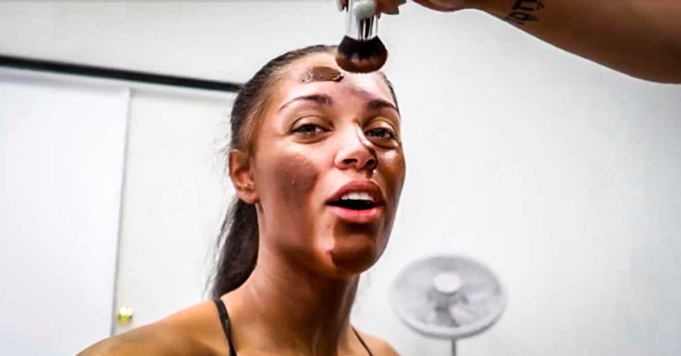 "I already look different," Prince says as her makeup artist applies a dark liquid to her face.