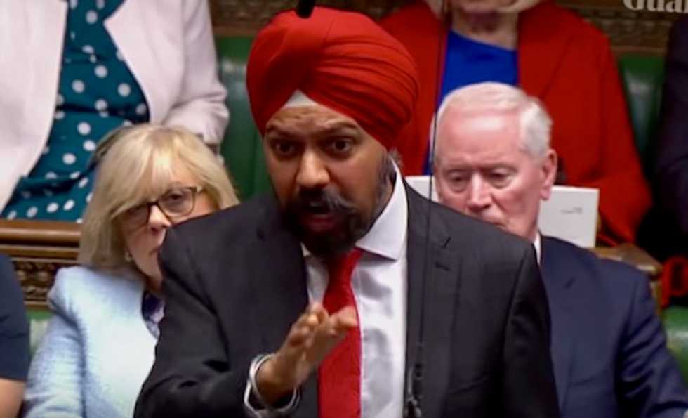 A Sikh member of British Parliament won applause from his colleagues and praise from progressives around the world Wednesday when he gave an impassioned speech demanding that Prime Minister Boris Johnson publicly apologize for the racist, xenophobic rhetoric he's spread as the country inches toward a possible exit from the European Union.