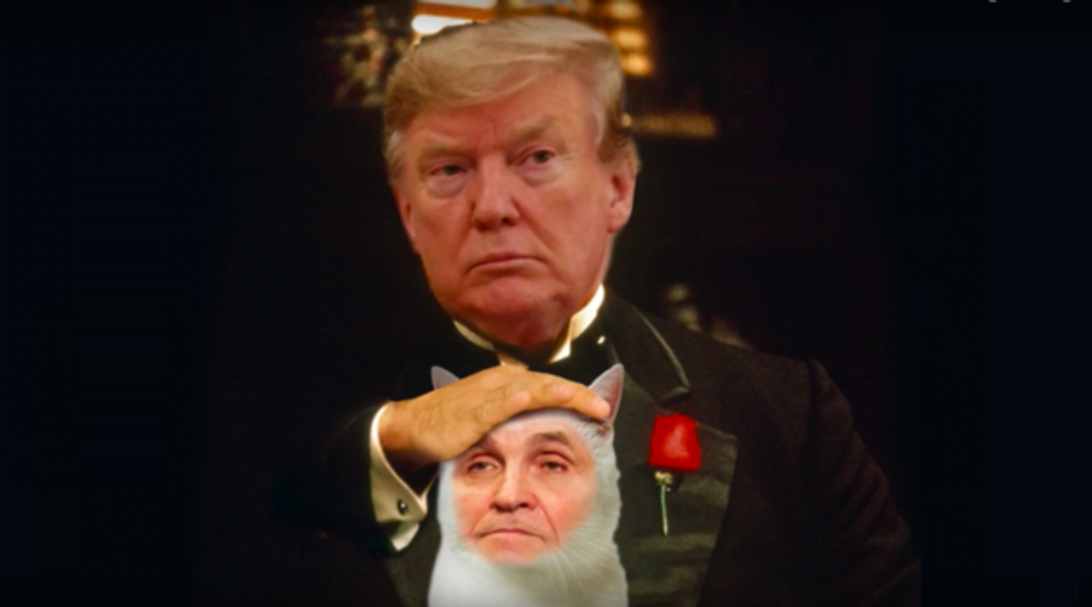 The reference was to the "Godfather," but Meyers confessed Trump's pets are really Mike Pence or Rudy Giuliani.