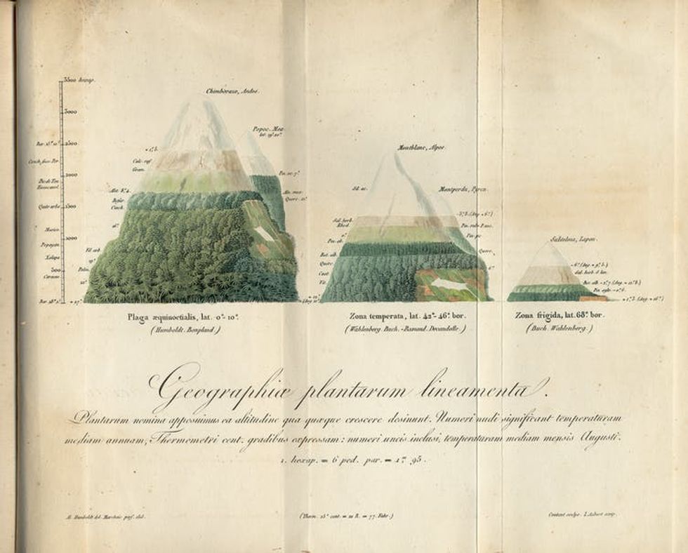 An 1817 Humboldt manuscript showing a geographic distribution of plants.