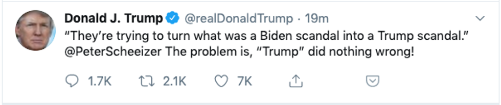 Trump then tweeted a conspiracy theory by Tom Fitton that Trump's Ukraine scandal is a "malicious seditious effort."
