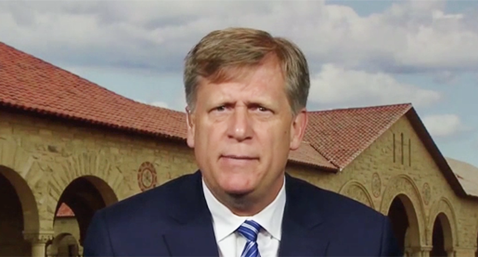 "It is outrageous, and it needs to stop," an angry McFaul told MSNBC. "This is somebody who has served on the battlefield and off. You can disagree with his actions, and we can talk about that, but you cannot attack his integrity, and you certainly cannot slander him because of his ethnicity. It really bothers me. Sorry."