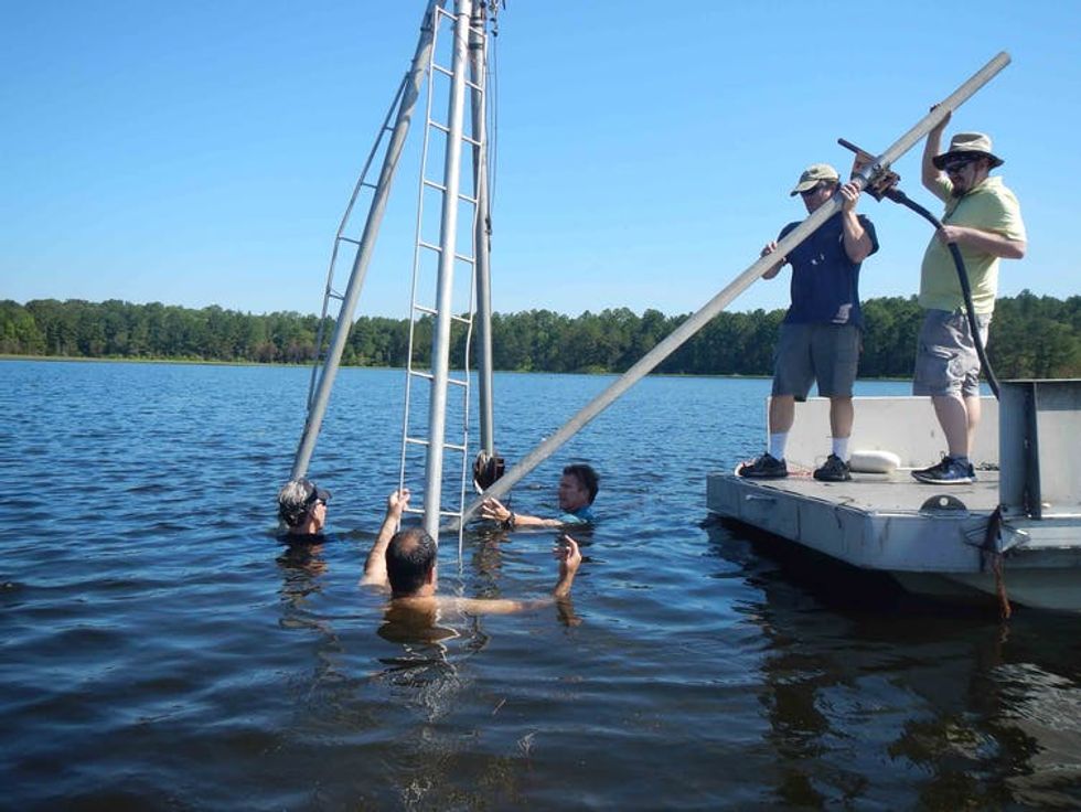 Collecting sediment cores from White Pond in 2016.