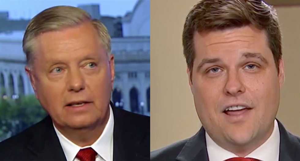 On MSNBC Saturday, former Congressman David Jolly (R-FL) lambasted the "stupidity" of President Donald Trump's defenders for attacking Democrats on process rather than defending the president's conduct. In particular, he singled out Senate Judiciary chairman Lindsey Graham (R-SC) and Rep. Matt Gaetz (R-FL).
