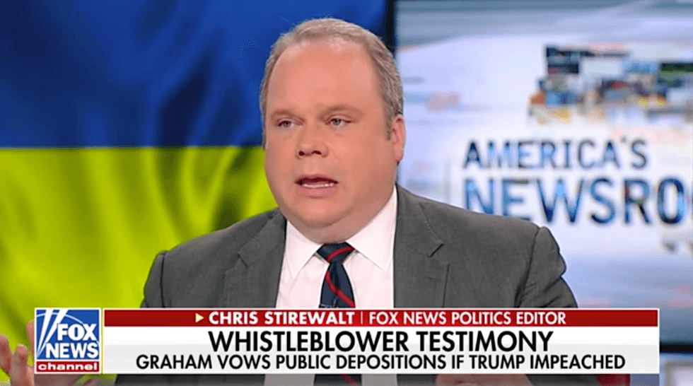 During a Fox News segment this Monday morning, a panel of commentators discussed the media's alleged role in pushing for an impeachment of President Trump, and whether or not Democrats are rushing towards a vote on articles of impeachment. At one point, America's Newsroom host Bill Hemmer turned towards Fox News Political Editor Chris Stirewalt and said that there's "no record" of the allegations against Trump and his apparent pressuring of the Ukrainian government to investigate his political rivals.