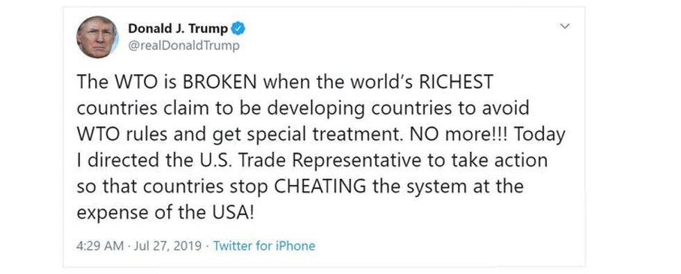 President Donald Trump ignited a new front in the US-China trade war in July by tweeting that the world’s richest nations were masquerading as developing countries to get special treatment.