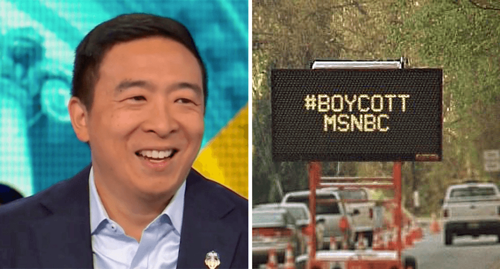 Presidential candidate Andrew Yang blasted MSNBC on Saturday for their coverage of the 2020 presidential campaign -- starting a dogpile on the network that caused #BoycottMSNBC to trend nationwide on Twitter.