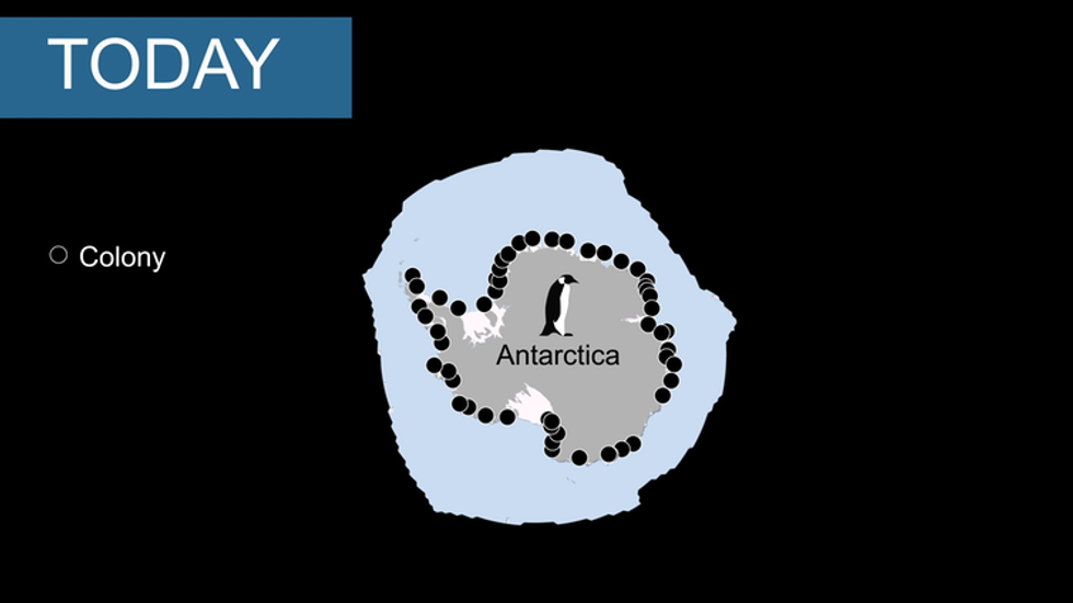 When we used a climate model linked to our population model to project what is likely to happen to sea ice if greenhouse gas emissions continue on their present trend, we found that all 54 known Emperor Penguin colonies would be in decline by 2100, and 80% of them would be quasi-extinct. Accordingly, we estimate that the total number of Emperor Penguins will decline by 86% relative to its current size of roughly 250,000 if nations fail to reduce their carbon dioxide emissions.