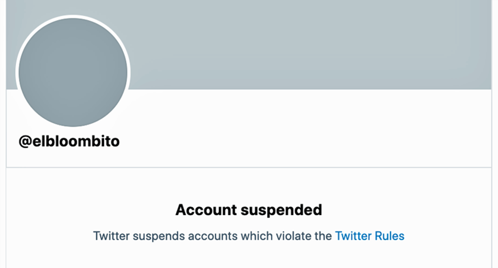 The suspended El Bloombito account on Twitter (screengrab)[/caption]